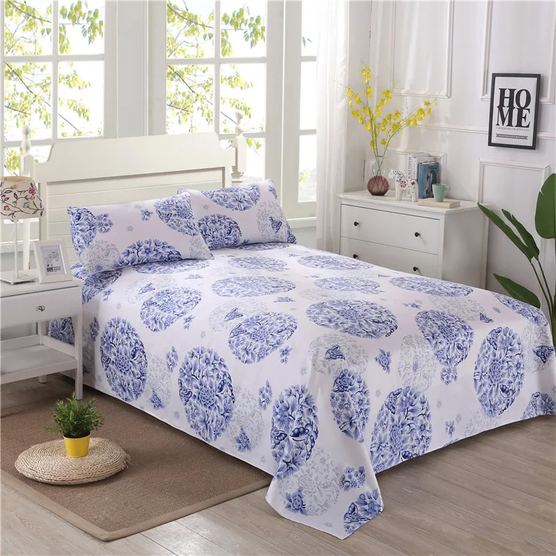 Twin Queen King size 3Pcs Bed Sheet Set Pillowcase Blossom Flower Top Bedding sheet 100%Cotton Ultra Soft Breathable Flat sheet