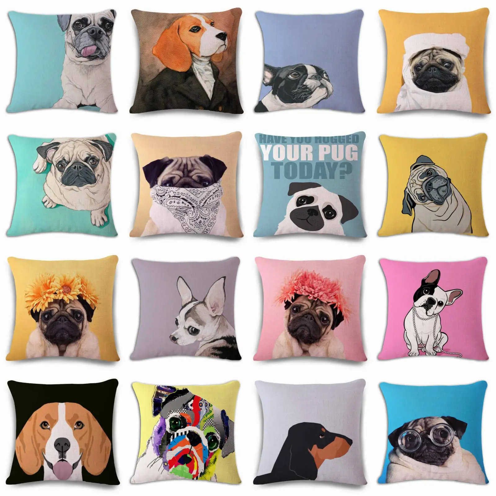 Hot deal HGLEGYW Pug Cotton Linen Pillow Case Throw Pillowcase Cotton Linen Printed Pillow Covers For Office