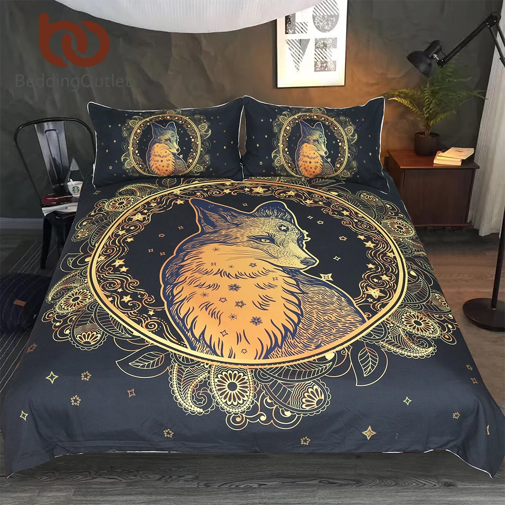 Addition Information of BeddingOutlet Golden Fox Bedding Set Animal Stars Duvet Cover Set Paisley Home Textiles 3-Piece Lea