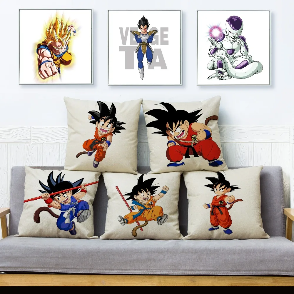Japan Anime Dragon Ball Son Goku Print Throw Pillow Cover 45*45cm Textile Cushion Cover Linen Decor