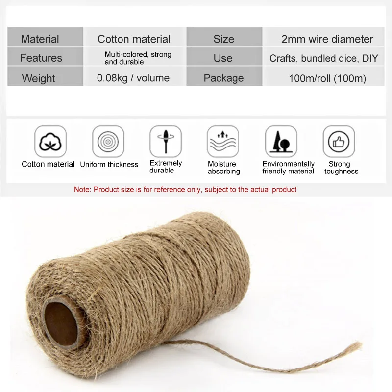 Addition Information of Natural Jute Twine Burlap String Florists 100m Woven Ropes Hemp Rope Wrapping Cords Thread DIY Scra