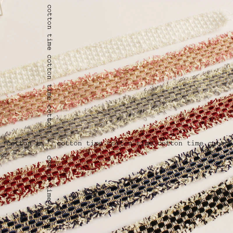 Best product 5yards/lot Tweed Webbing 2.5cm wide Woven Ribbon Velvet Tassel Trim brand style accessory for bag g