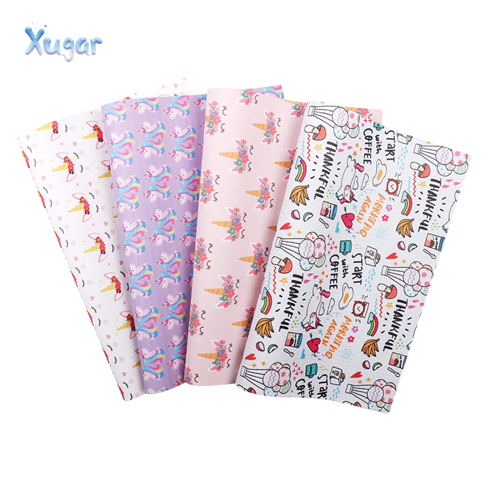Best Seller Xugar 22*30cm Unicorn Printed Faux Synthetic Leather Fabric Sheet DIY Hair Bows Craft Handmade Sewi